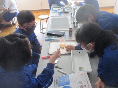 出入り口が上と下では、結果が異なります。そこで、温められた気体の動き(対流)や二酸化炭素について学習しました。