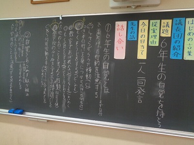 今日の議題は「6年生としての自覚を持とう」で、目当ては「一人一回発言」でした。