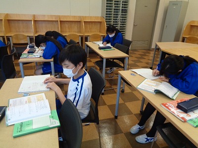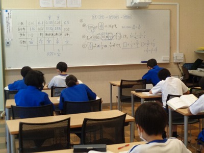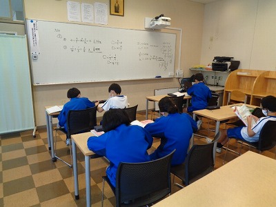 習熟クラスは学習室で進めています。分数の計算も今日で終わり。まとめの問題に取り組みました。