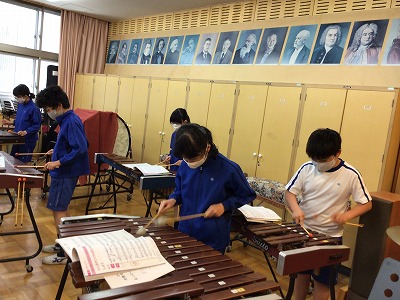 その音階をもとに、“低音パート”の短調や長調の響きで表現されていることを学習しました。「♪マルセリーノの歌」の前半(ア)部は「ラーソーファーミー」と、まさに“イ短調”の音の階段を下りていくように演奏できます。
