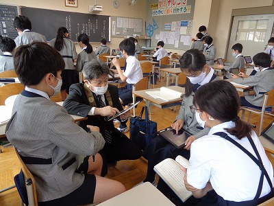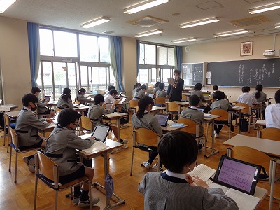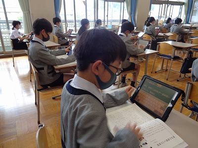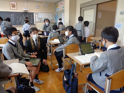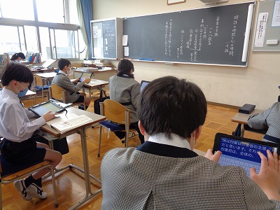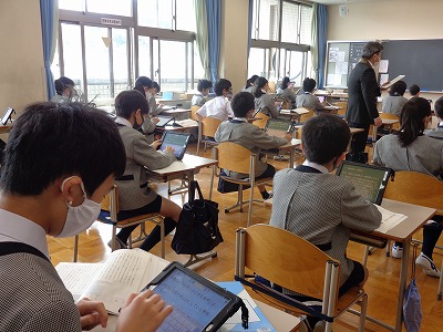 授業の流れは、まず個人で考えて、ロイロノートのカードに記録...