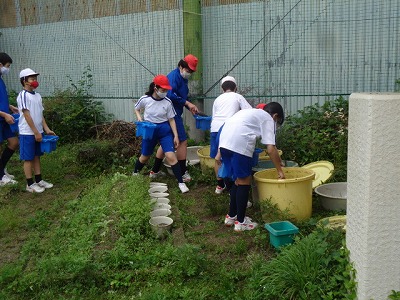 中高のグラウンドを5周程度走ります。途中で自分のペースを乱すことなく、一定のペースで最後まで走ることを目標に頑張っています。