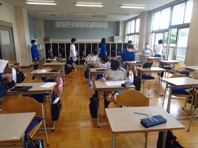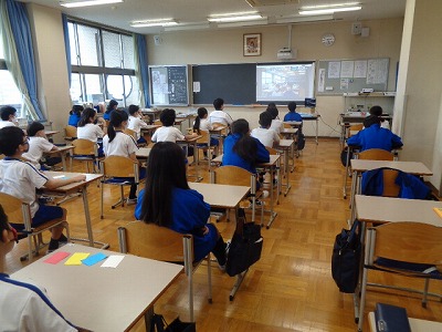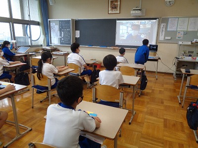 本部の問いかけをしっかりと受けとめ、和の部屋で参加した学級代表、リモートで発信した6年教室のメンバーともに、自分の考えを頑張って伝えていました。