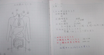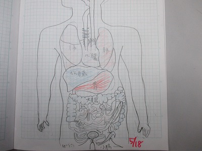 まず教科書に載っている「内臓図」の模写が、時間切れとなっていました。
