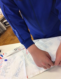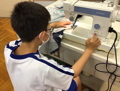 【家庭科「“すそ”と“ひも通し部分”のミシン縫い」】