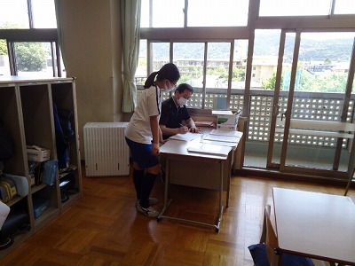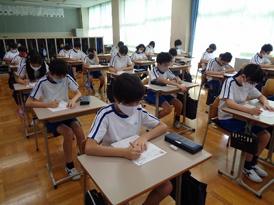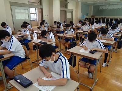 今日の学級活動は、机や椅子の脚の埃とり、自分のロッカーの整理をした後、今週に実施する算数テストに向けて、練習プリントに取り組みました。