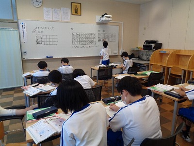 3時間目の算数、6年教室の発展クラスは、引き続き「比例・反比例」のプリントを進めていました。