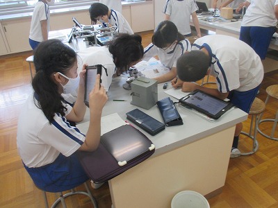 その後、火山灰資料(桜島)を配布して、その中の鉱石を観察しました。