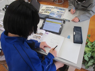 まずは、タブレットを使って、どんな身分の人たちがいたのか、その人たちのくらしぶり、自分の生活をよくするための工夫などを調べました。