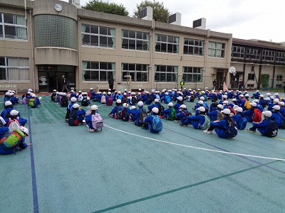 6年生の証であるゼッケンを着けて、運動場に集合。れんげ班の全員が集まるのは久しぶりです。月曜日に考えた班のテーマを伝えて、れんげ班活動がスタートしたことでしょう。