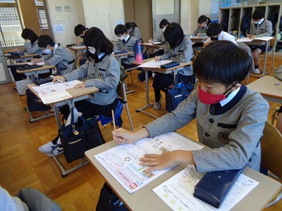 先週から予告していたテストです。事前に復習プリントも実施して、テスト内容を確認したので、全員満点を目指してほしいところです。