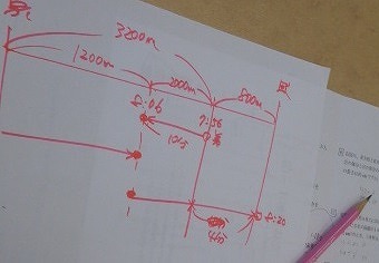 それに加えて、玉井先生からのヒントで、赤ペンで書かれた線分図なども見られます。