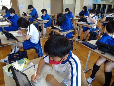 今日は、昨日決定した自分の調べたい日本文化について、ウェブで調べ、その情報を国語ノートに書きました。予想していたほど、情報に辿り着けずに苦戦しているようです。