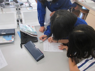 各個人のプリントを見ると、多くの数字、図や表が見られ、正解を導き出すために頑張ってる様子が分かります。