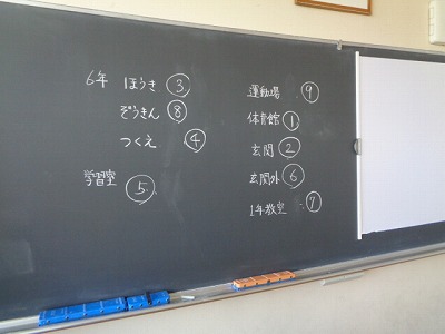 6年生の掃除場所の中で、一番人気は体育館。4つのチームが第1候補として挙手しました。希望が複数あった場所は、ジャンケンで決定します。