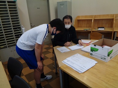 玉井先生への質問や丸付けは、ホワイトボードに自分の名前を書いて、その順番を待ちます。