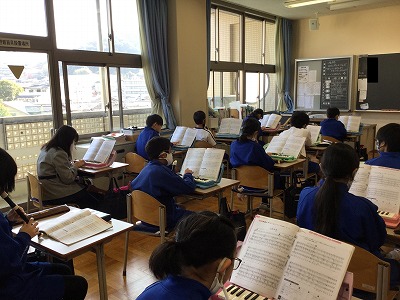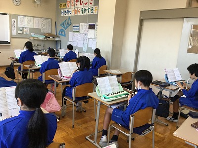 今日は、鍵盤ハーモニカで伴奏部分を練習しました。前の時間に、リコーダー奏でメロディ部分を練習していたので、この伴奏パートとマッチすることが実感できました。
