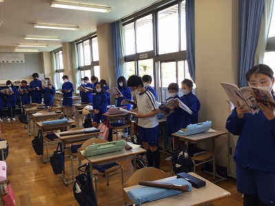 「♪明日を信じて」の二部合唱を教室で練習しました。