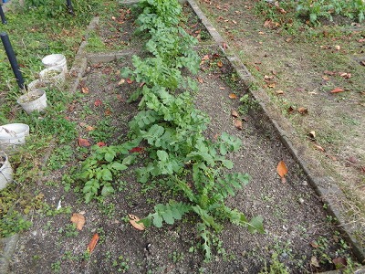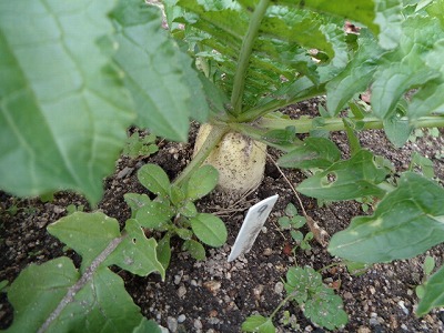 根っこマラソンの後、学習園まで足を運んで、大根の育ち具合を確認しました。