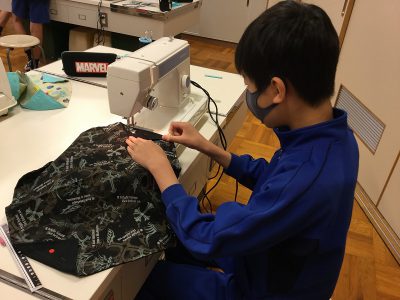 「ひも通しの部分」は4カ所です。必ず“返し縫い”をして、頑丈に仕上げます。