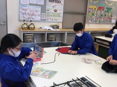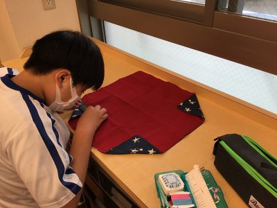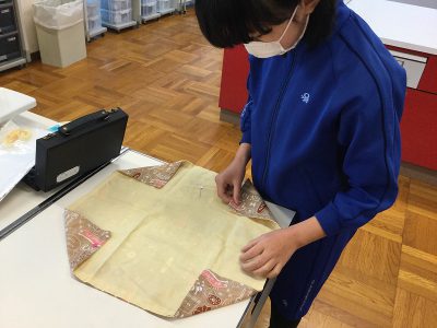 【家庭科「お弁当包み・ひも通しの部分縫い」】