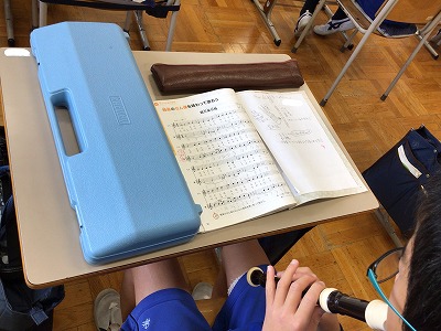 「レミラ」の音を選び、“笙”を担当する和音の響きを、鍵ハモが担います。途切れることなく流れるように演奏するので、近くの人と“ブレス”をずらせて息つぎをする必要があります。