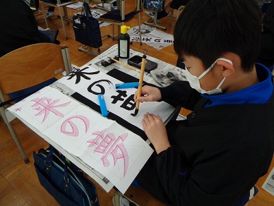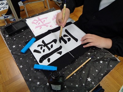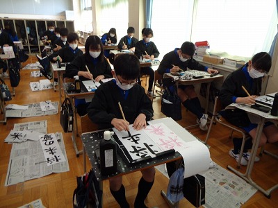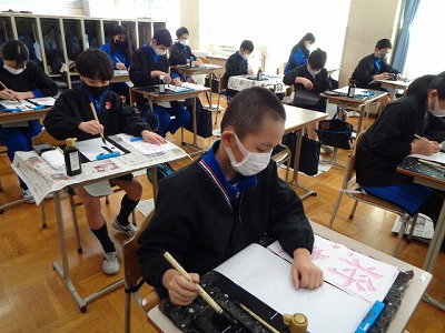 国語は、作品展に向けて「将来の夢」の書き初めに取り組みました。