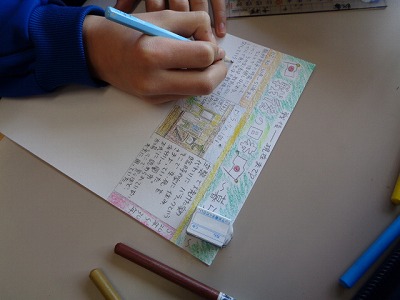 イラストやグラフ、表などをかき、レイアウトの工夫を加えて、みんなに関心を持ってもらえるような新聞が仕上がってきました。