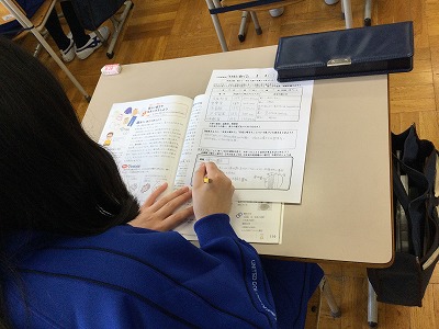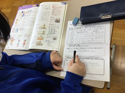 まとめの学習として「冬を暖かく過ごすための着方の工夫」や「日光の取り入れ方の工夫」など、教科書に載ってる資料をもとに、気づいたことや考えたことを書く活動に取り組みました。