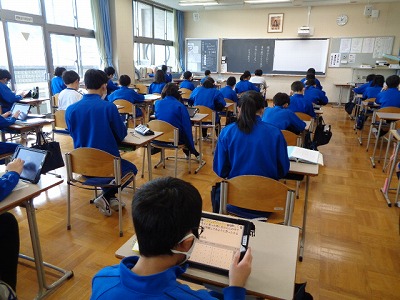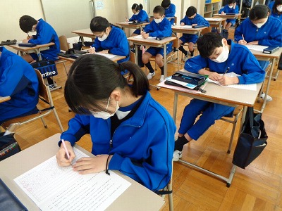 国語の後半は、WEB鑑賞会に向けて、自分の発表原稿を考えました。