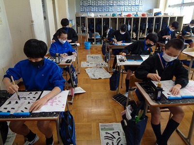 3学期に入ってから、水曜日の2時間目は、毎週、習字に取り組んでいます。