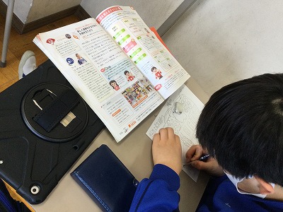 6年生最後の家庭科です。「マイ弁当」のメニューを考案し、発表する時間を過ごしました。