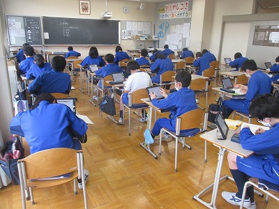 それぞれ10分程度の時間内で、ほとんどの子がWEBを使って調べています。