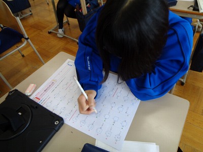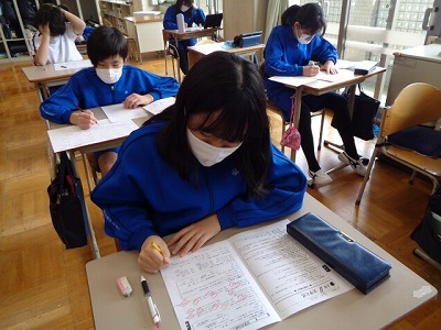 その後、漢字まとめのプリントを実施。自分で答え合わせをして、6年生の漢字を確かめました。