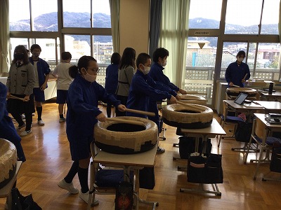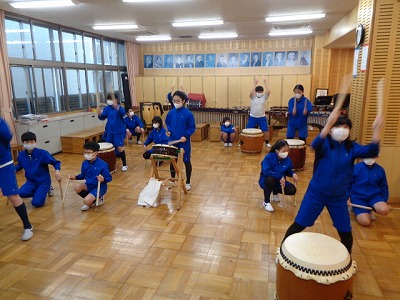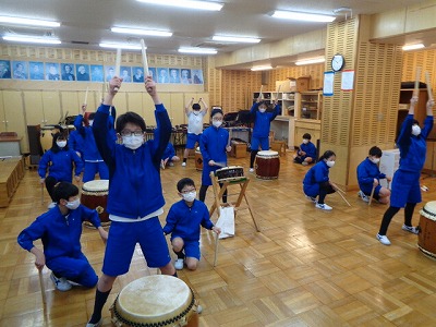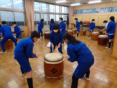 バチの先を見つめる視線、体全体でリズムをとる、膝を曲げて姿勢を低くするなど、太鼓を打つ姿に気を付けて練習に臨みました。