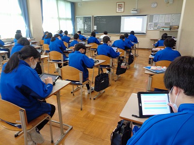 次に、英検に出題されそうな問題を5題、ロイロノートでチャレンジしました。