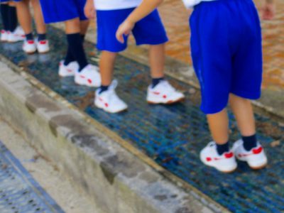 ひと足早くに5年生が終わった後の「足ふき場」です。