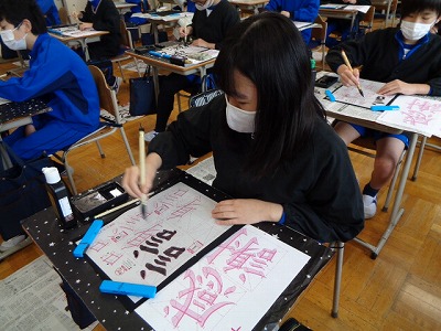 2時間目、2週間ぶりの習字を実施しました。