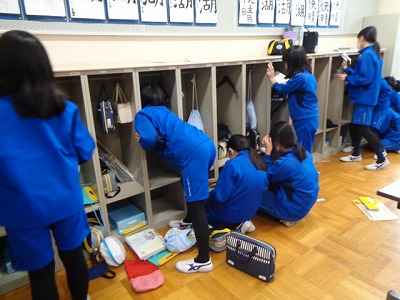 自分のロッカーを整理した後、ロッカーの雑巾がけを行いました。