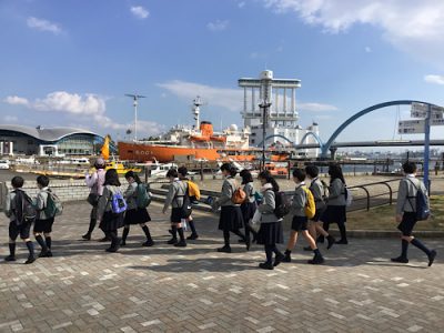 港の一角に、2代目の南極観測船「ふじ」が見えました。船まるごとが展示されています。