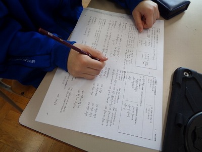 算数の習熟クラスは「1次式の計算」に取り組んでいます。