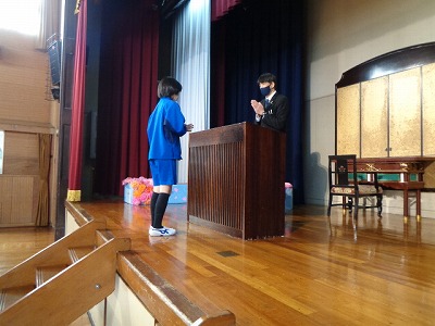 証書を受け取る時の礼のタイミング、壇上に上がる前の待つ姿勢、受け取った後、自分の座席への戻り方など、細かい打ち合わせを校長先生と共に行いました。