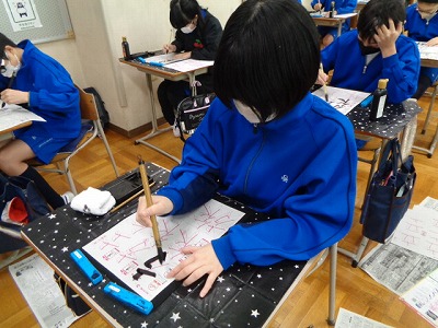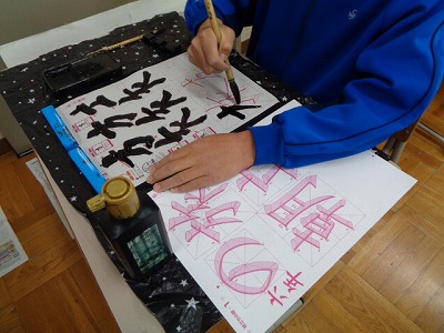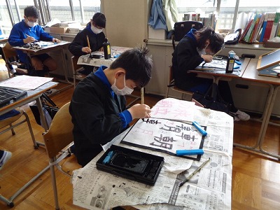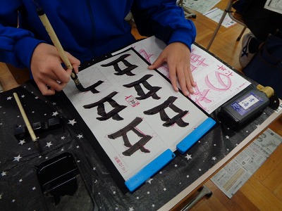 半紙に5文字を書くことは初めてなので、文字配置のバランスが難しかったようです。