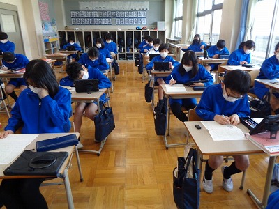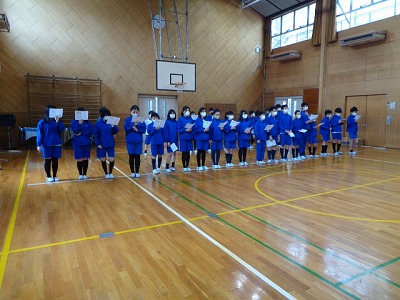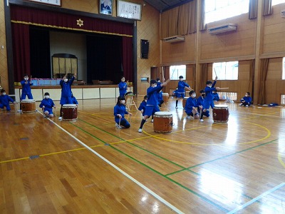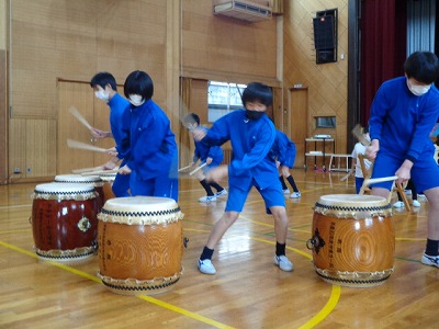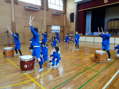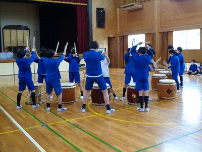 「ありがとうの会」「卒業式」の歌を練習した後、「龍神太鼓」「嵐山太鼓」の順で行いました。