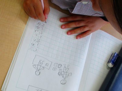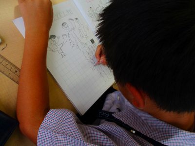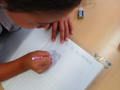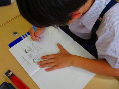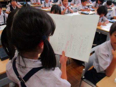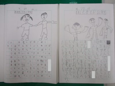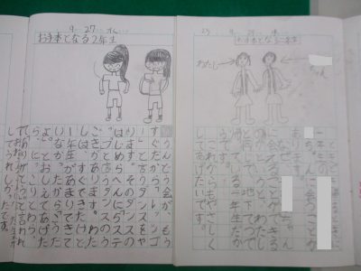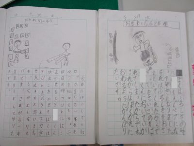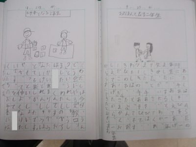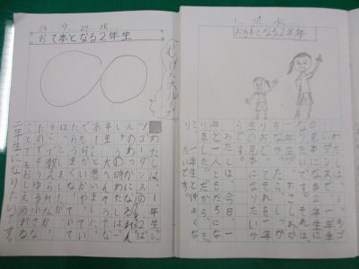 今、取り組んでいる競技や演技を通した1年生との交流の様子、また休み時間や登下校時のふれあいなどを思い出し、“お手本になりたい!”自分の気持ちをまとめノートに書きました。