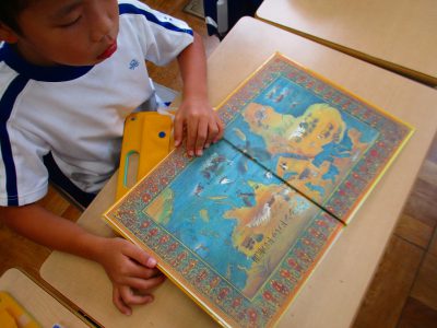教室では、図書館の本を読んだり…