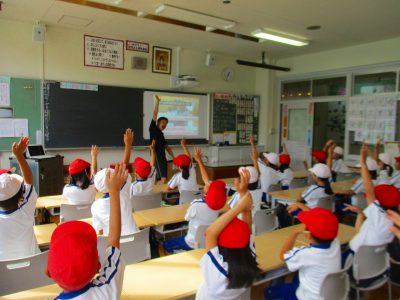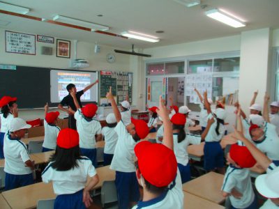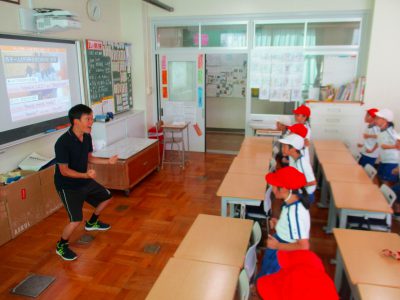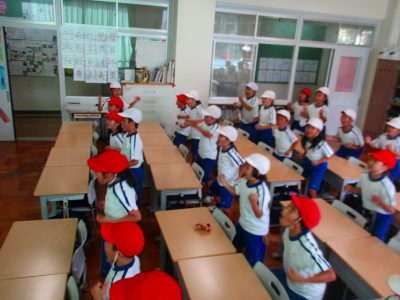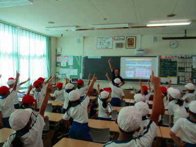 そのほかにも、"We are the champion!"と、喜びの声・フレーズを教えていただき、2年生の教室は、揺れるほどに運動会ムードに包まれました。